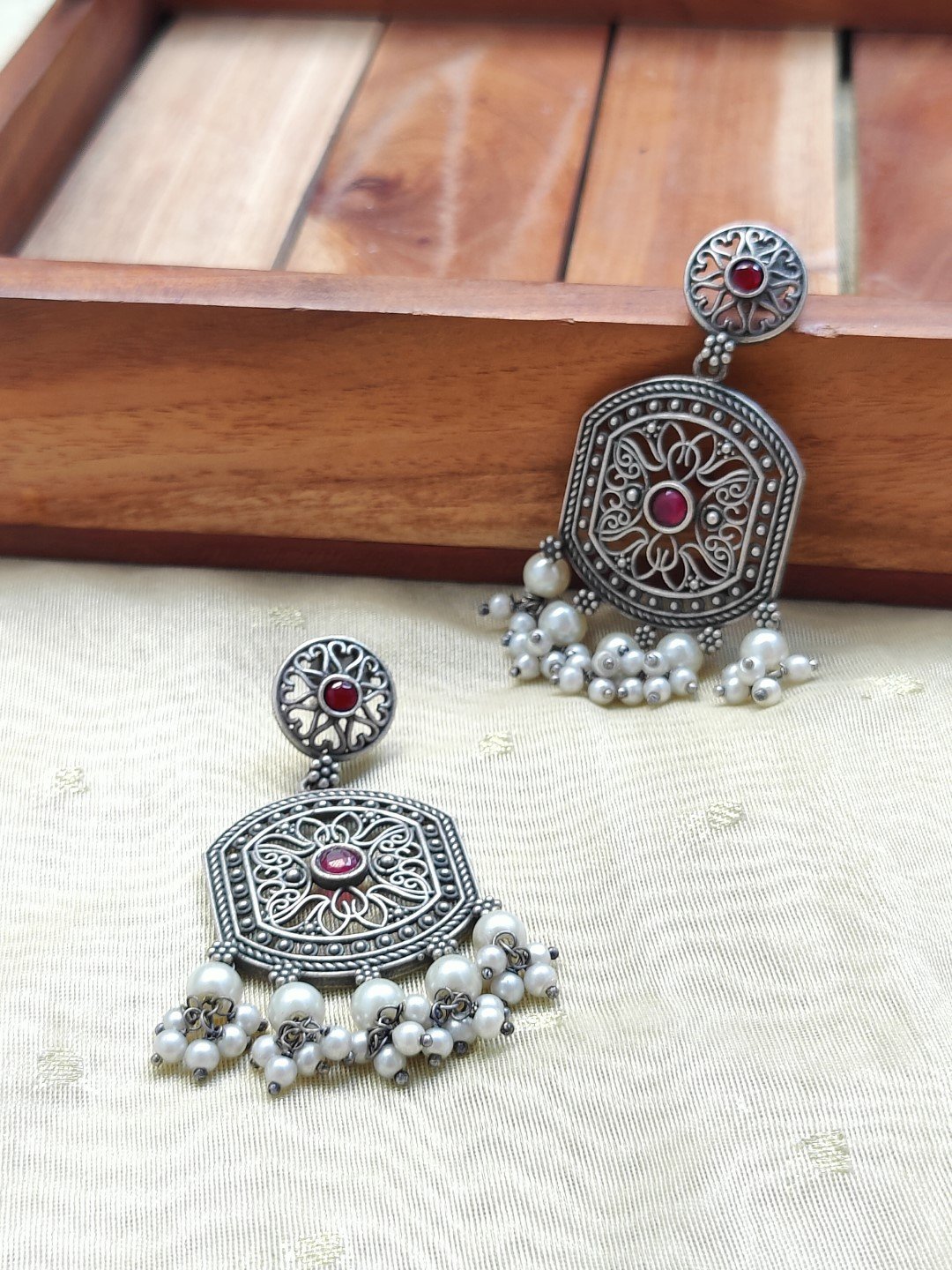 We are thrilled to bring you ‘Heeramandi Inspired Jewellery’. Presenting ‘Alamzeb’ , extremely trendy and light- weight . It is indeed our sustainable jewellery collection. Detailed Silver replica work with monalisa stone and pearl. Look amazing without compromising on the environment.