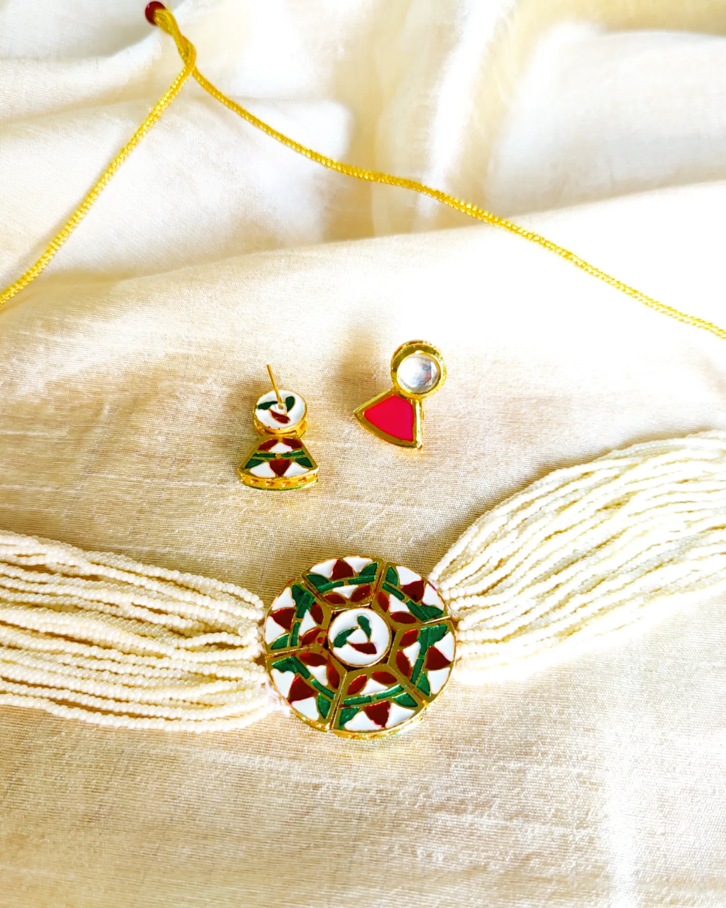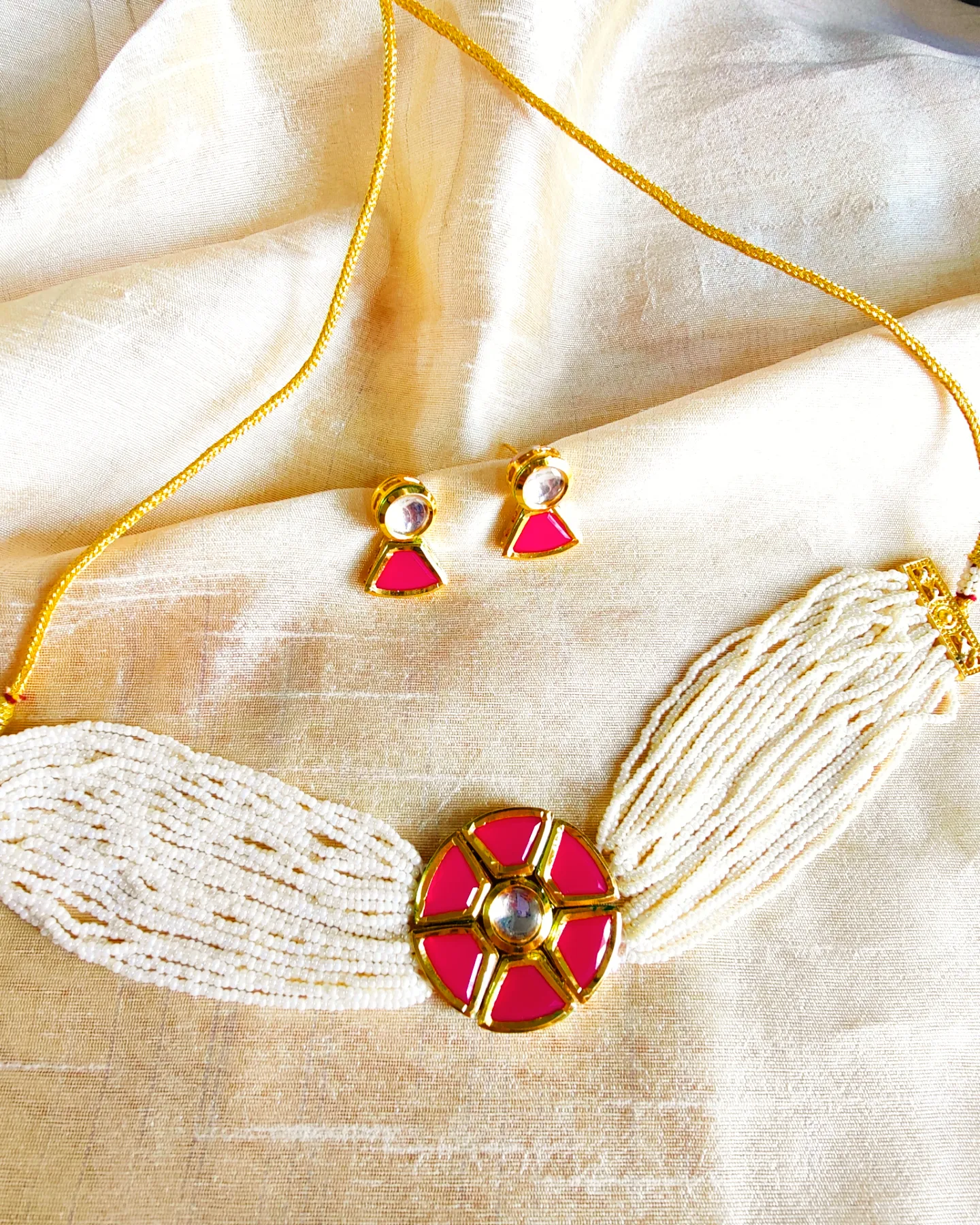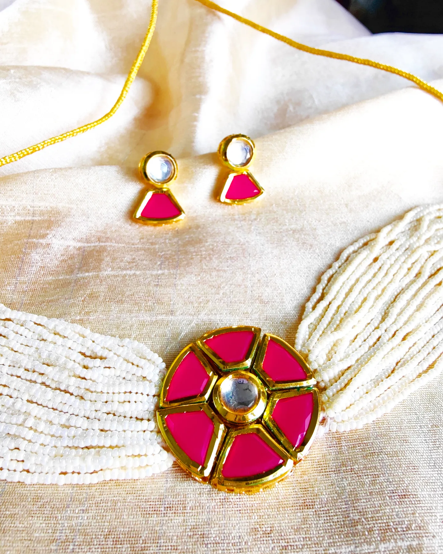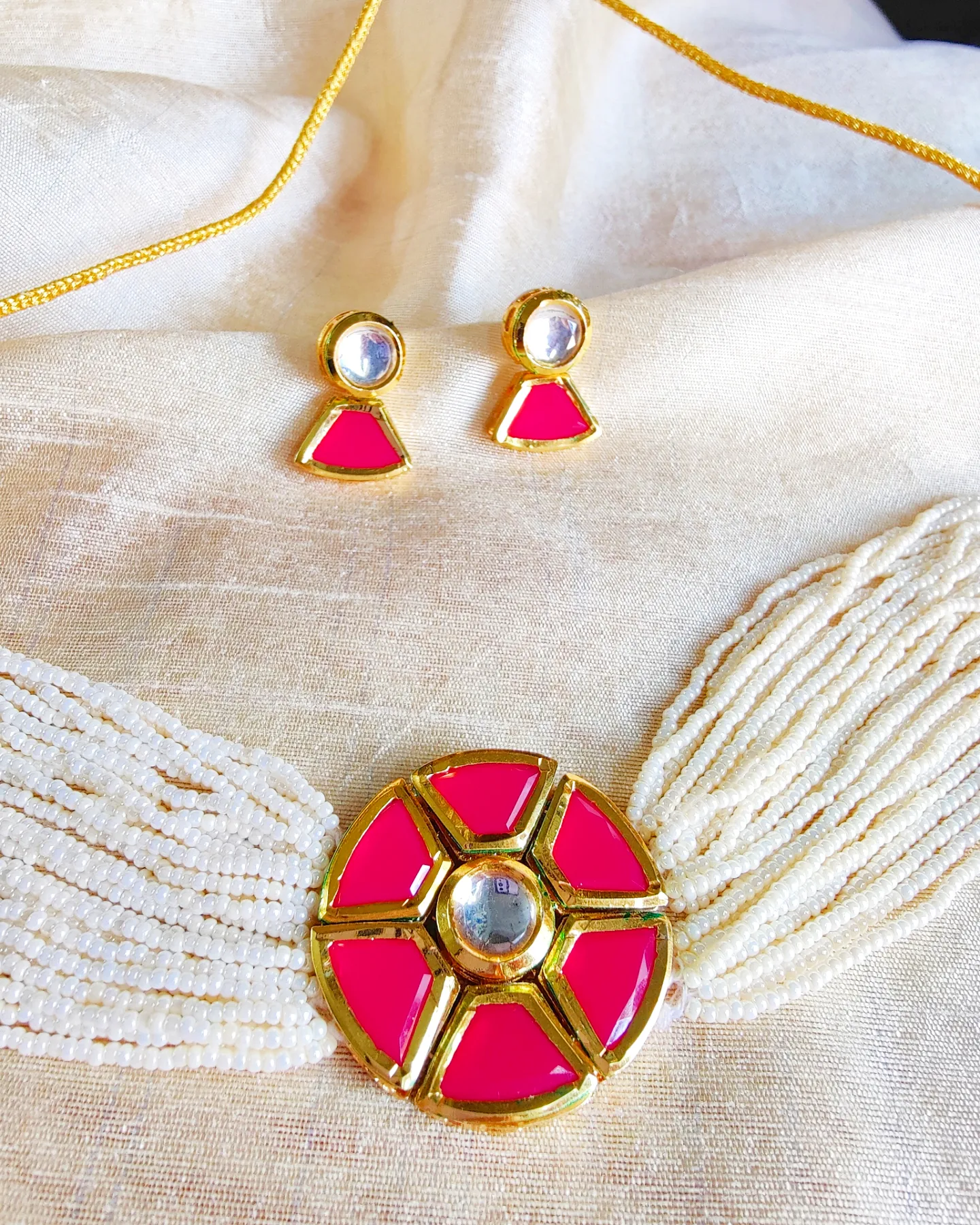 + ShippingPremium Quality Uncut Kundan design pearl neckpiece with polka design at the back
