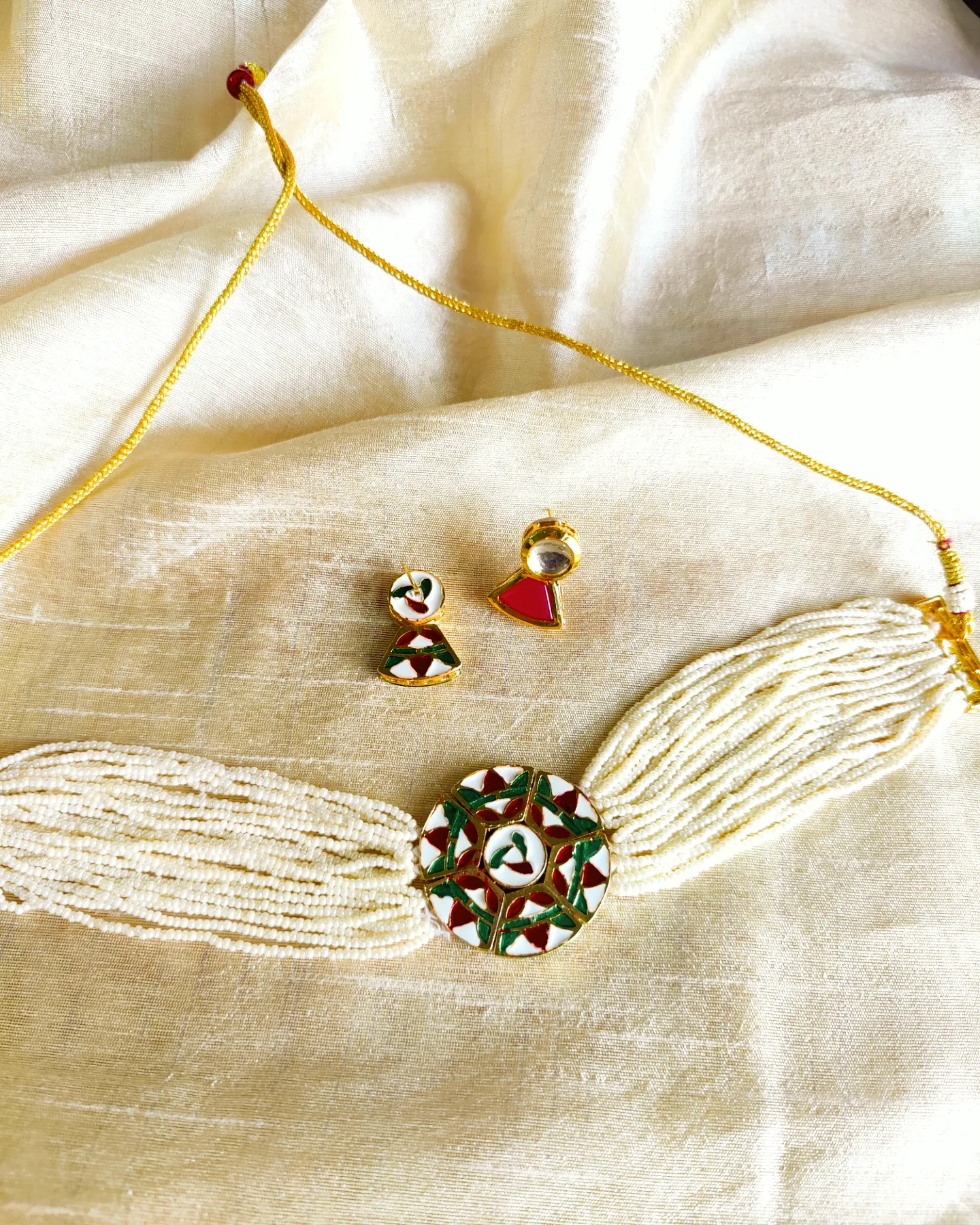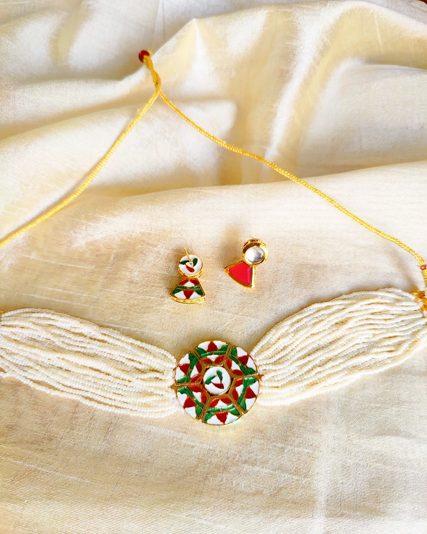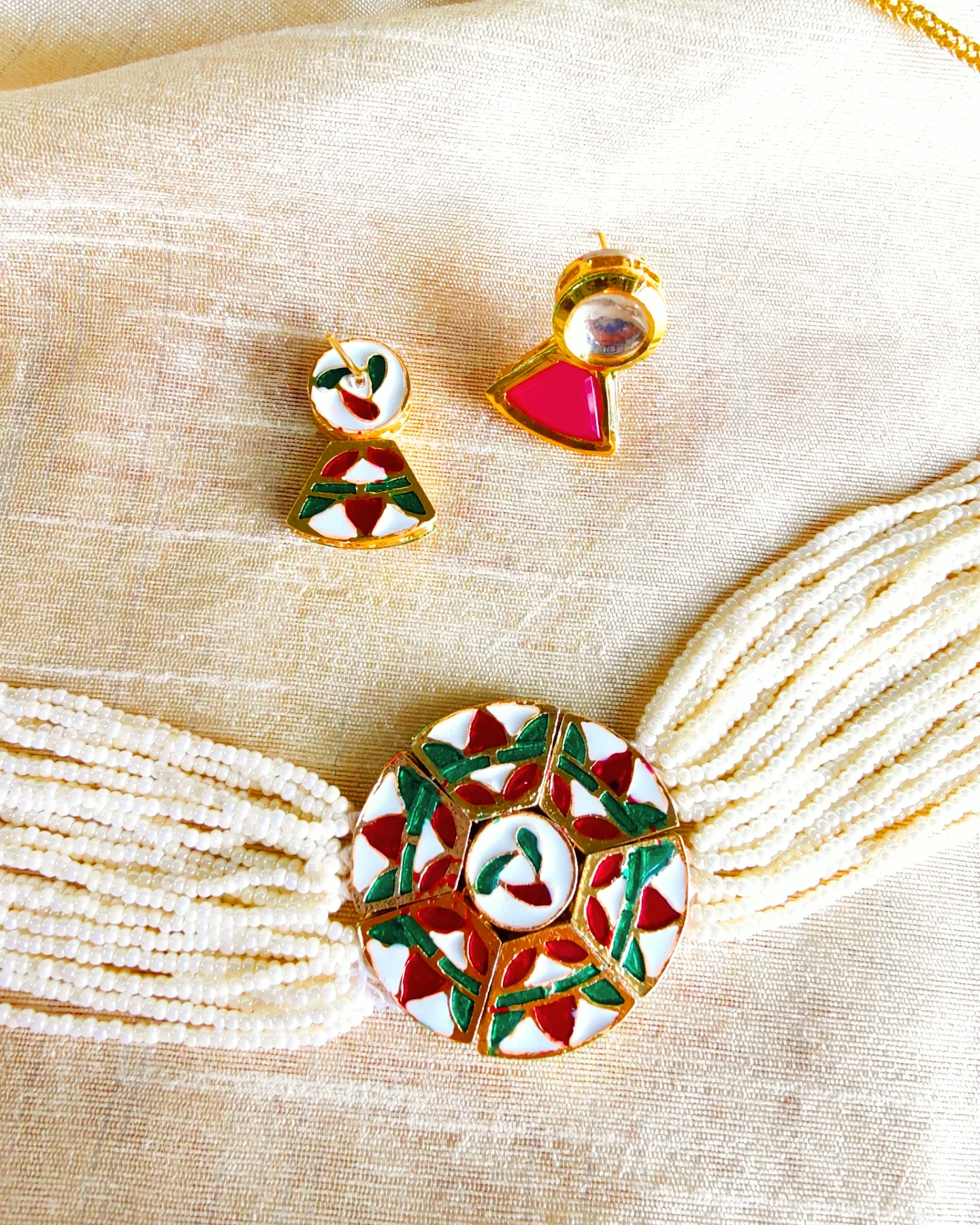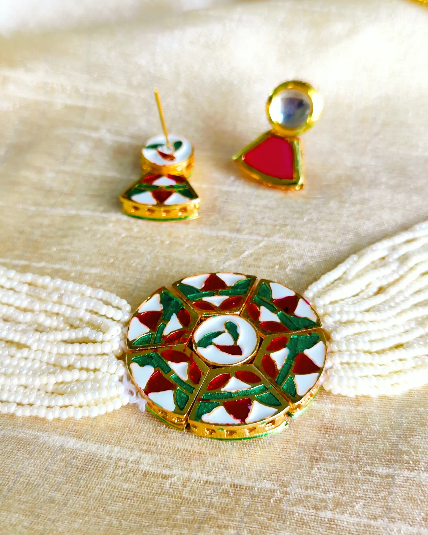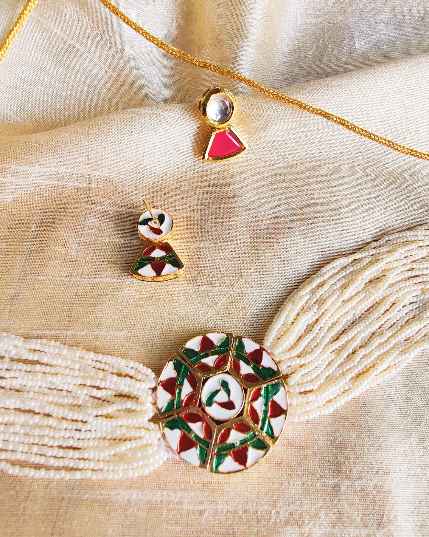 + ShippingPremium Quality Uncut Kundan design pearl neckpiece with polka design at the back