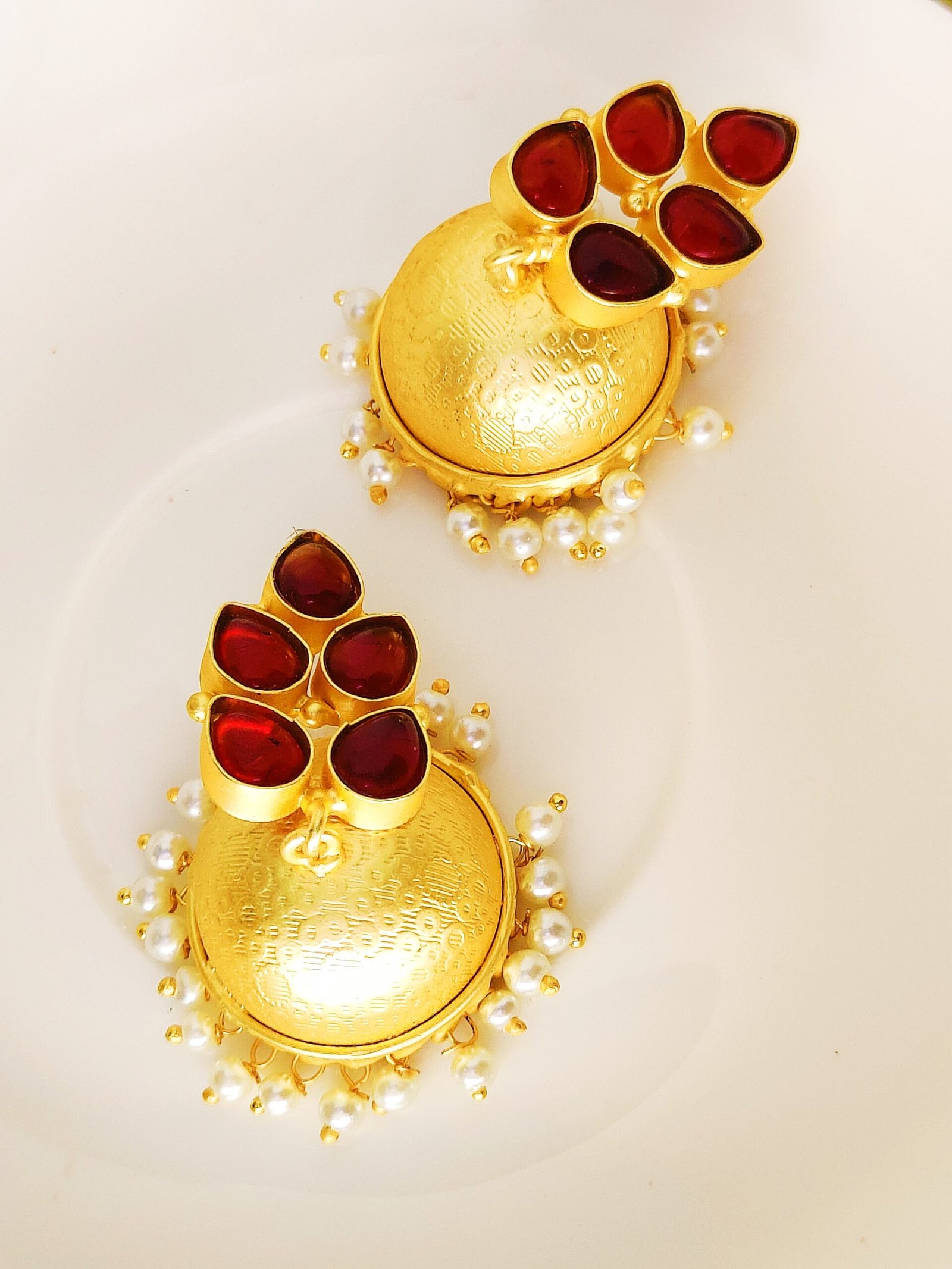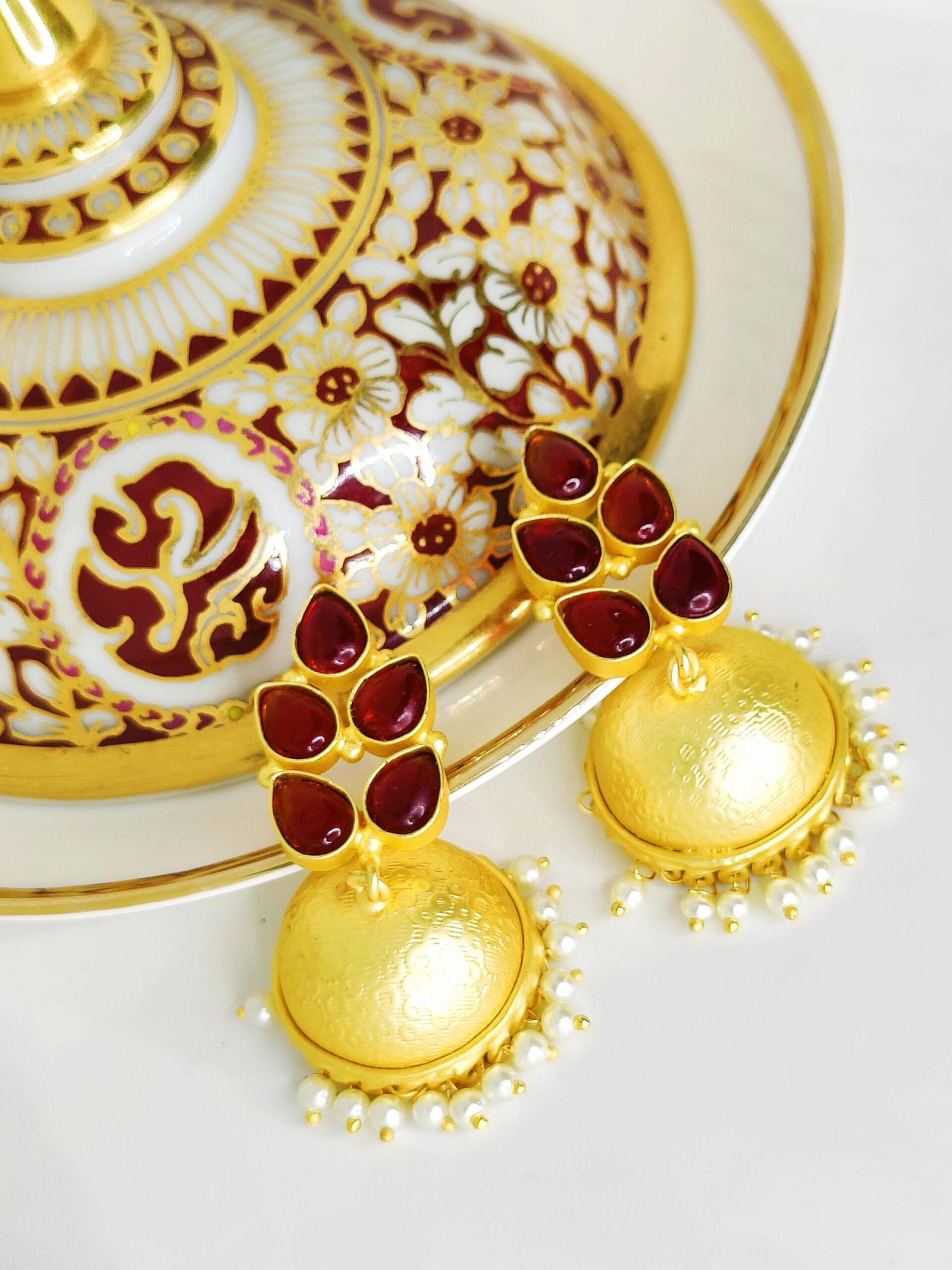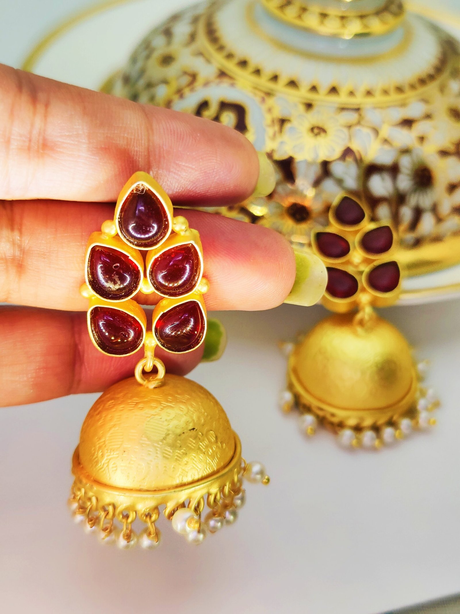 + ShippingGold Plated Jhumka with Ruby Stones