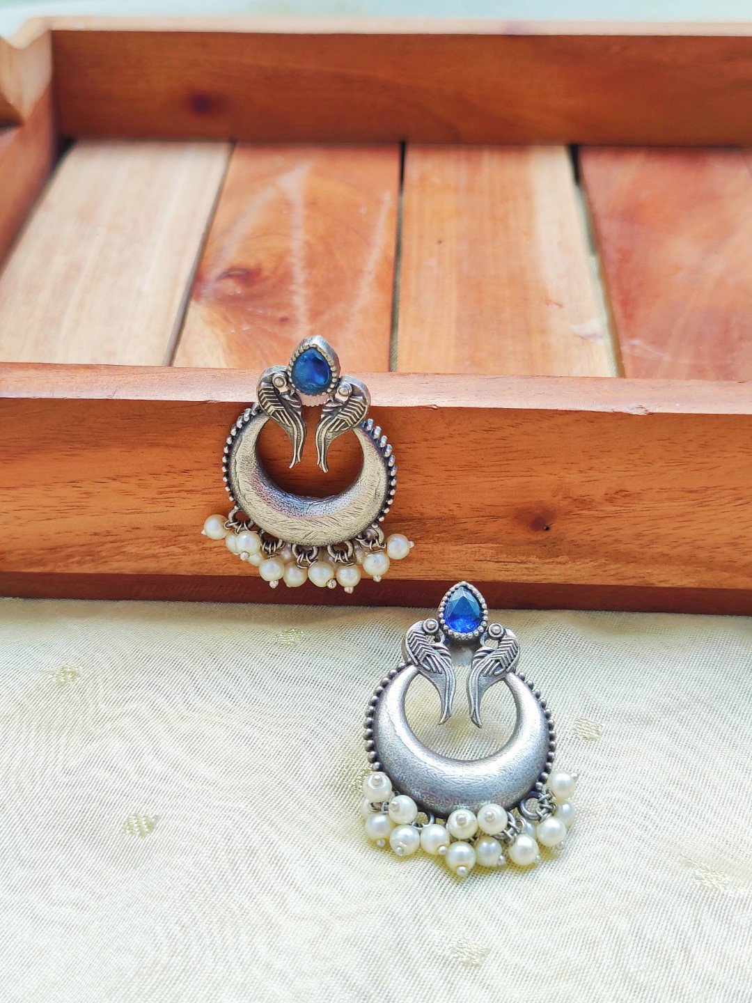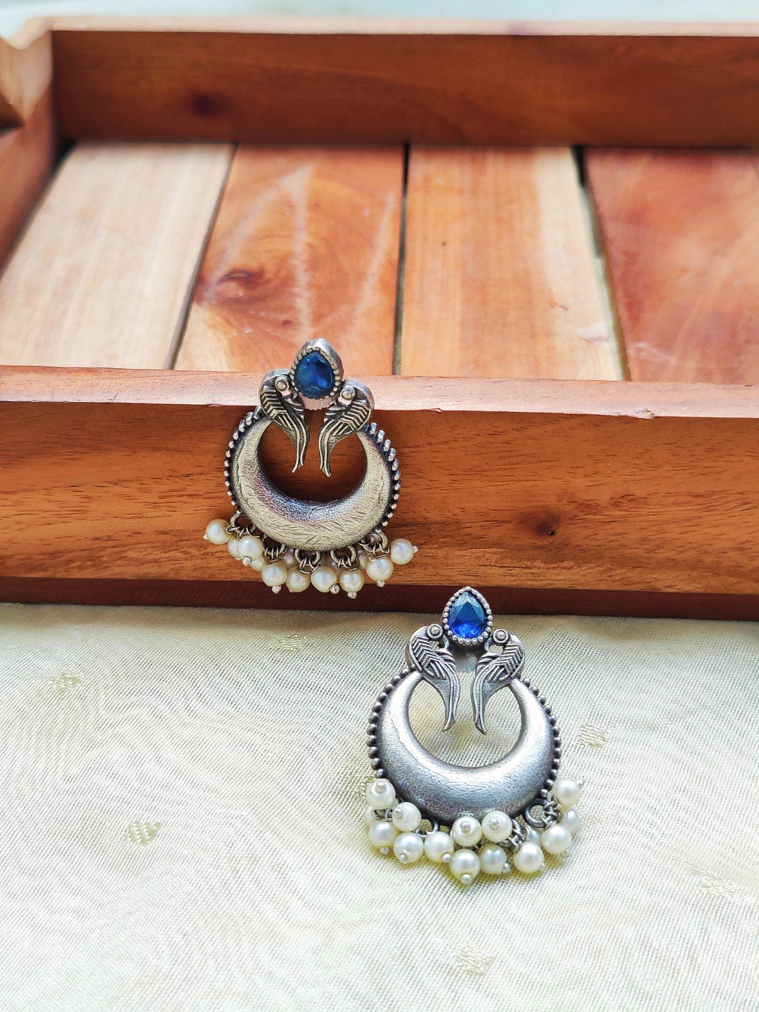 We are excited to bring you ‘Heeramandi Inspired Jewellery’. Presenting ‘Waheeda’ , extremely unique and gorgeous that honours sustainabilty. Detailed Silver replica work with monalisa stone and pearl.
